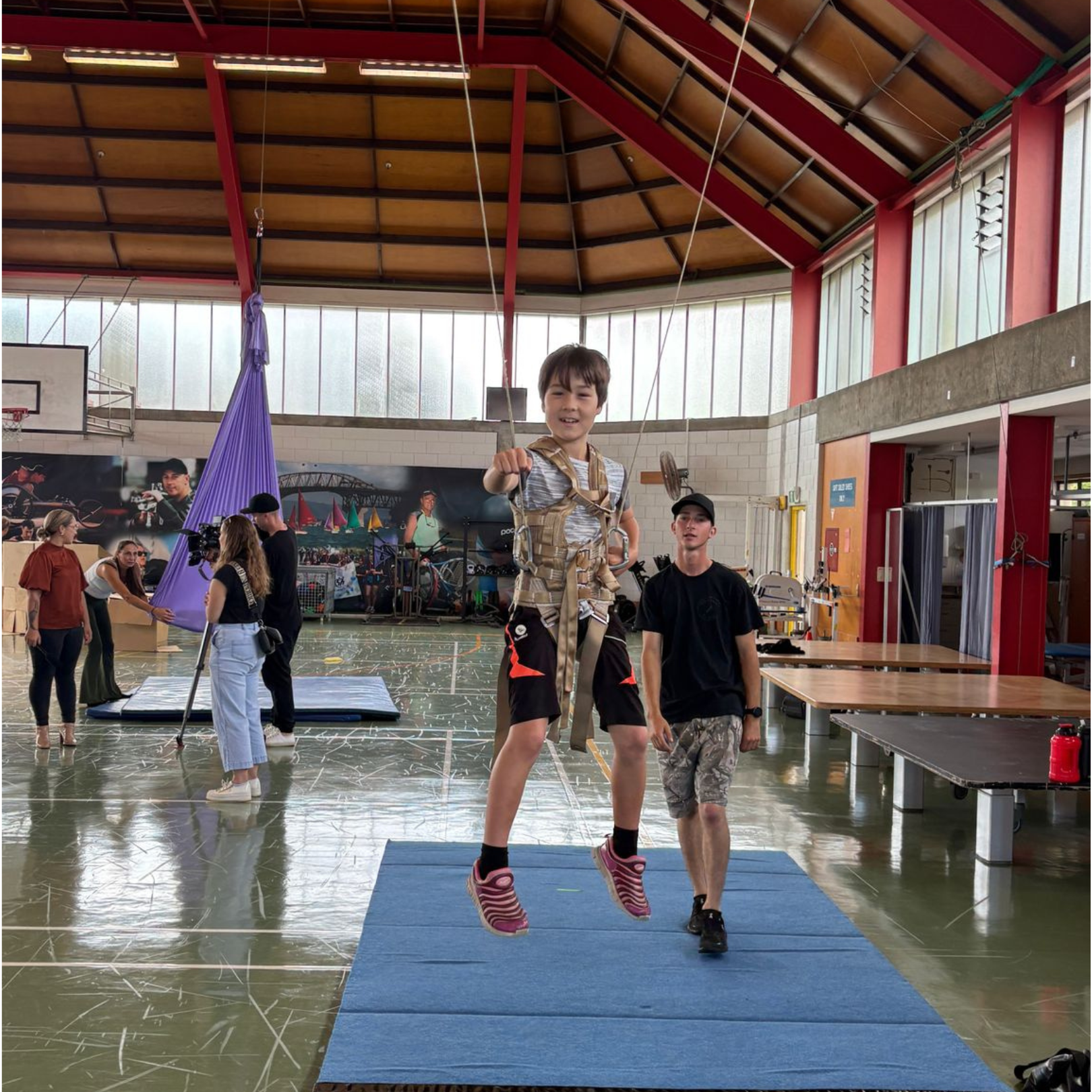 NZ Stunt School supports participants as they try out aerial work and weapon work. This is suitable for all ages and abilities!